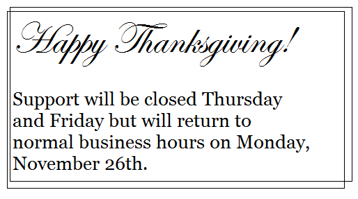 Thanksgiving Hours
